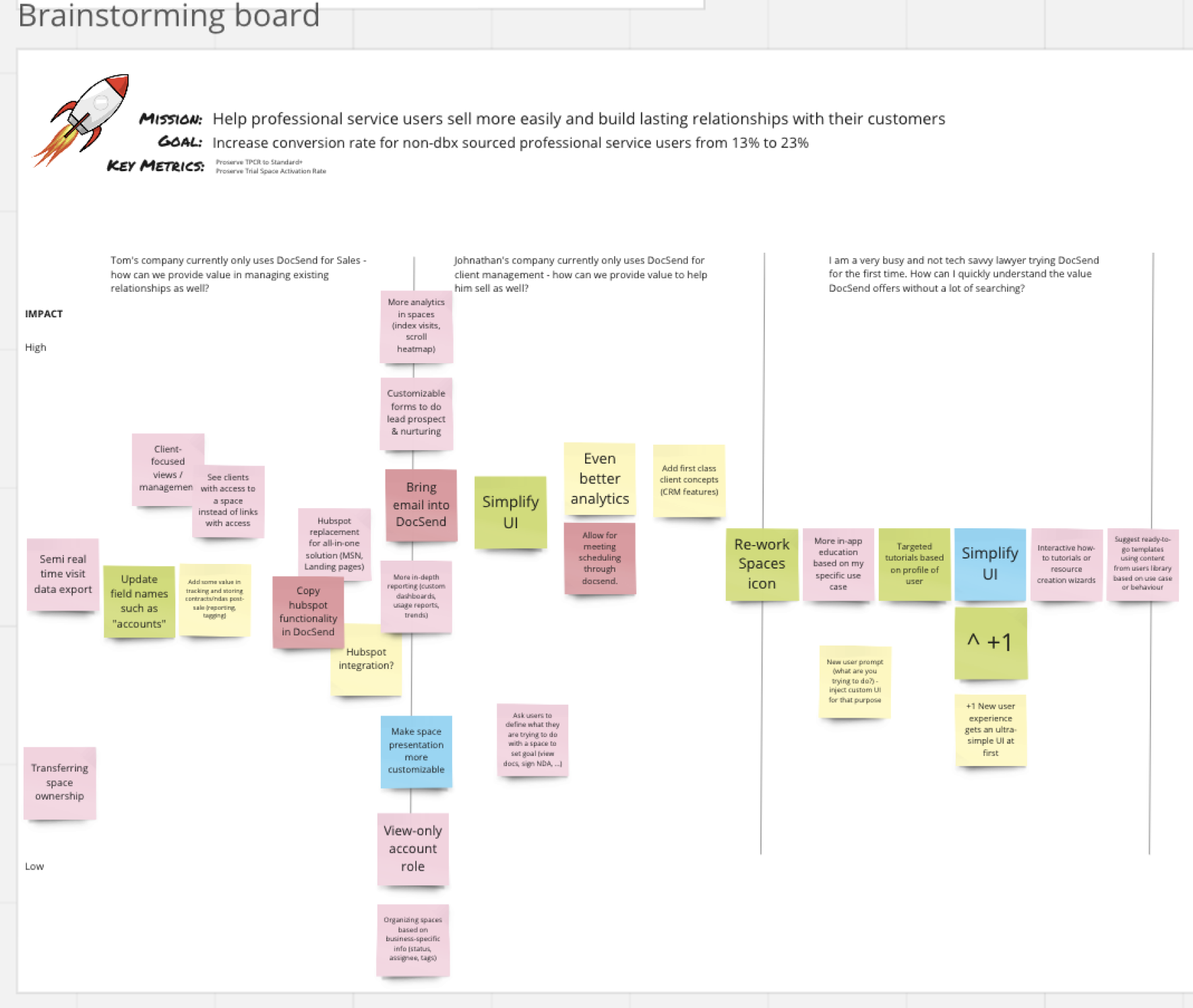 The spaces feature is proven to be an effective driver for upselling according to data. If we can attract more professional services to try out Spaces, it’s very likely that they’d convert from trial to paid, and from personal plan to advanced plan.