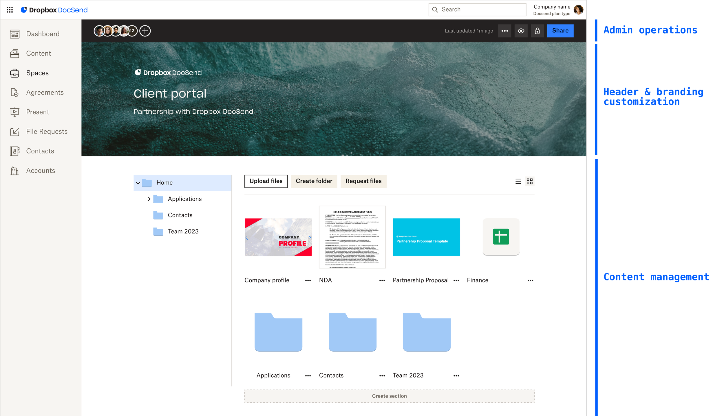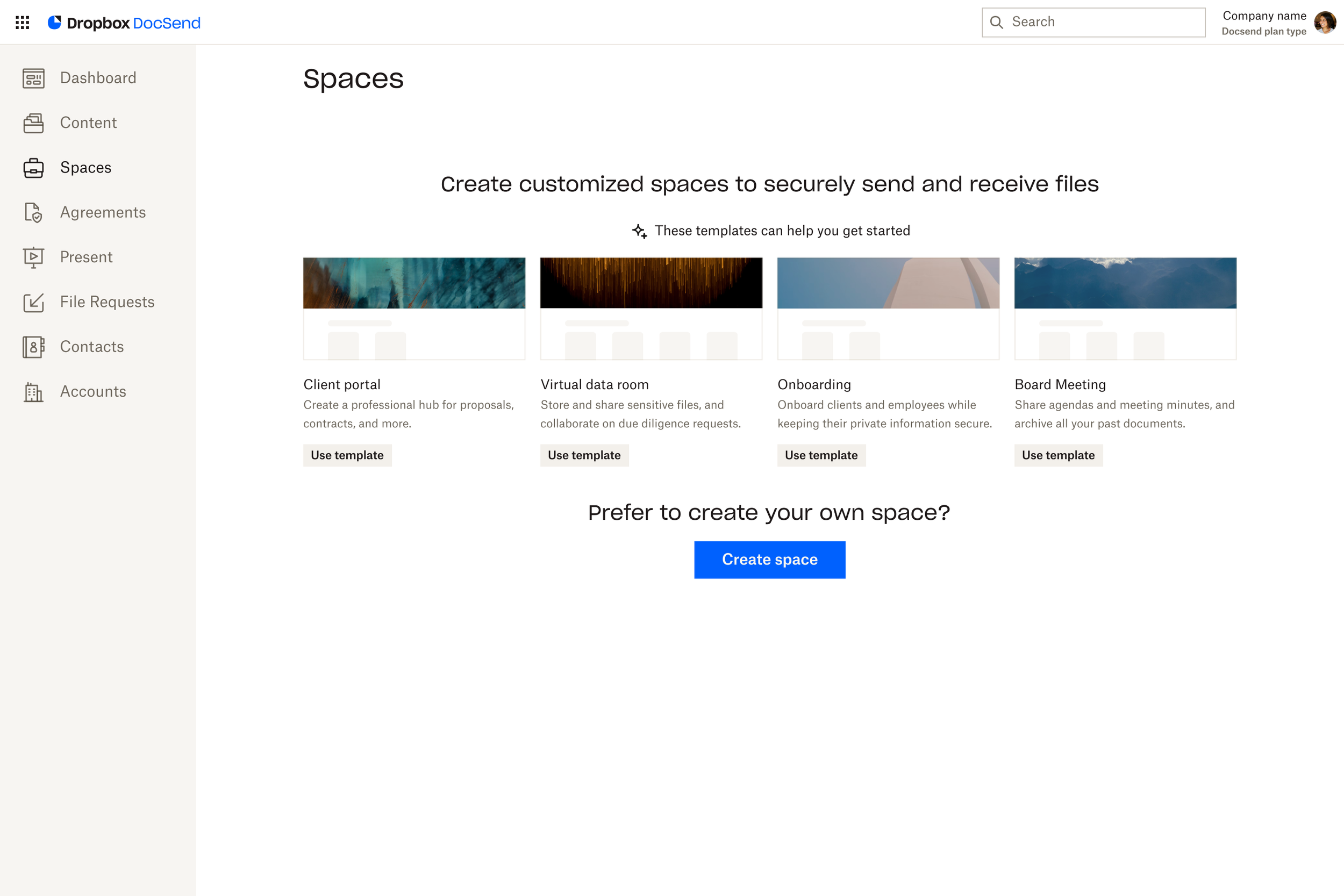 Current Spaces: primarily used by founders & investors for sharing and managing sensitive documents during fundraising, M&A…