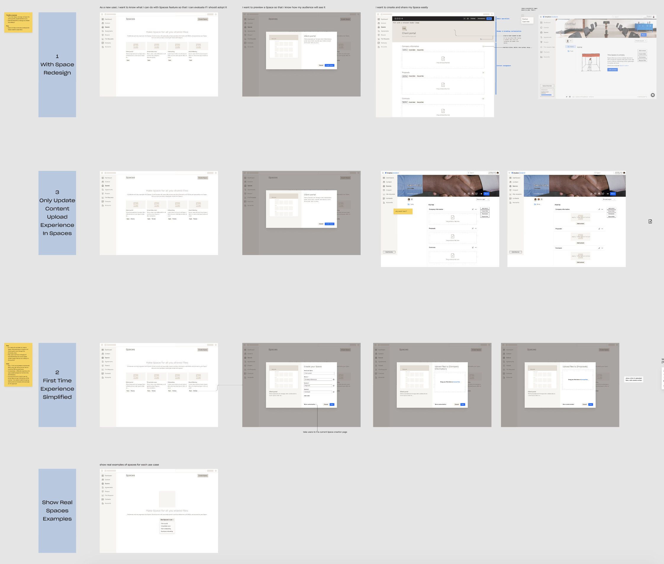 “Spaces” is a high-value feature used for sharing a collection of files and folders securely with a single link. The current customer base is highly concentrated in startup founders and venture capitalists, which makes the product very susceptible to macroeconomic headwinds. So the mission for Dropbox DocSend in 2023 is to diversify the customer base to professional service users. I led the design efforts of magnifying the product values of Spaces to attract more users from the professional service vertical.