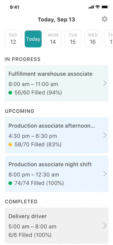 View jobs that are in progress, upcoming, and completed. Plan for production goals by reviewing fill rate.